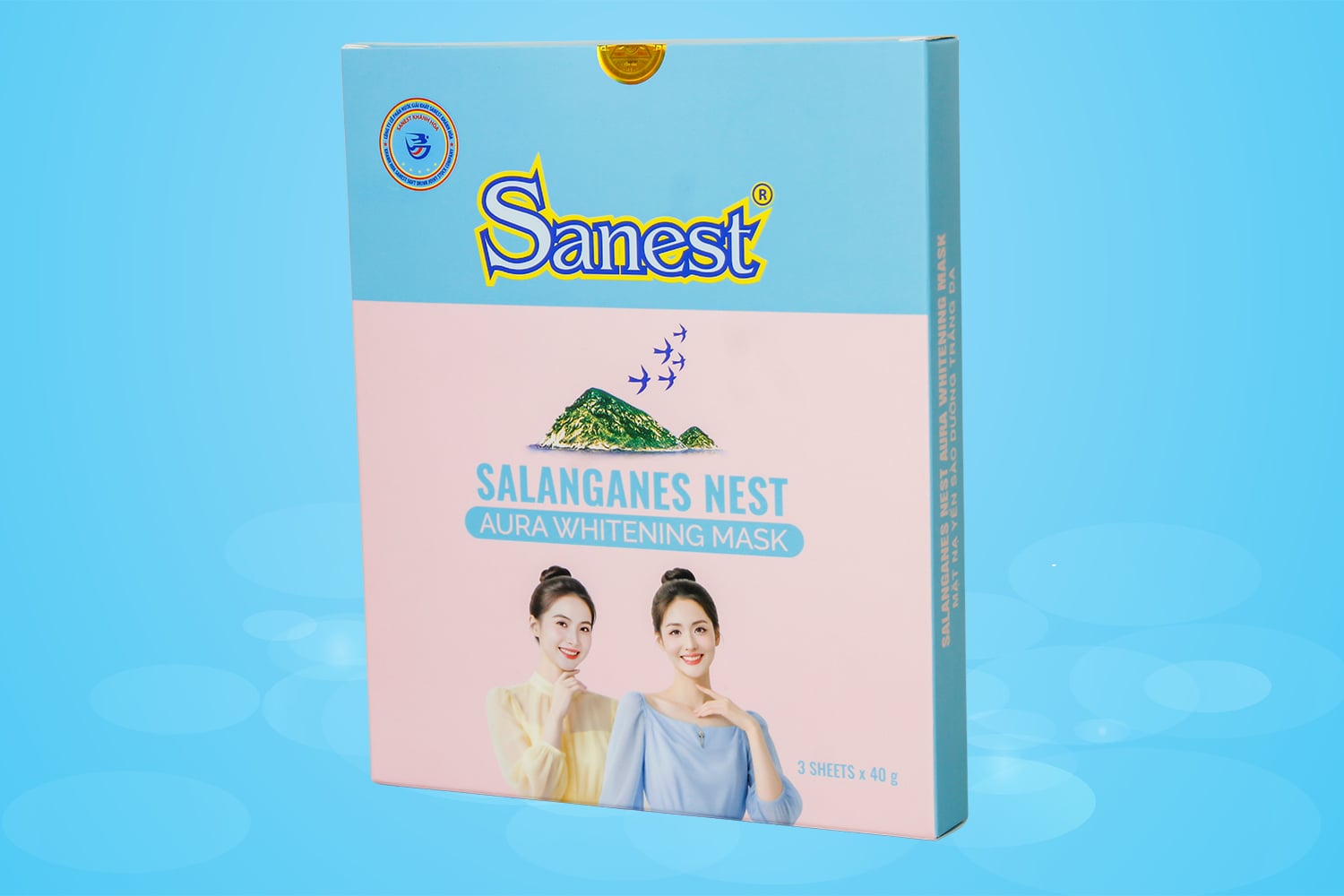 Mặt nạ Yến sào dưỡng trắng da với hàm lượng chiết xuất yến sào 500 ppm, kết hợp với phức hợp 5 loại peptide, các loại dẫn xuất của axit hyaluronic cùng với Niacinamide (vitamin B3) và chiết xuất rau má.