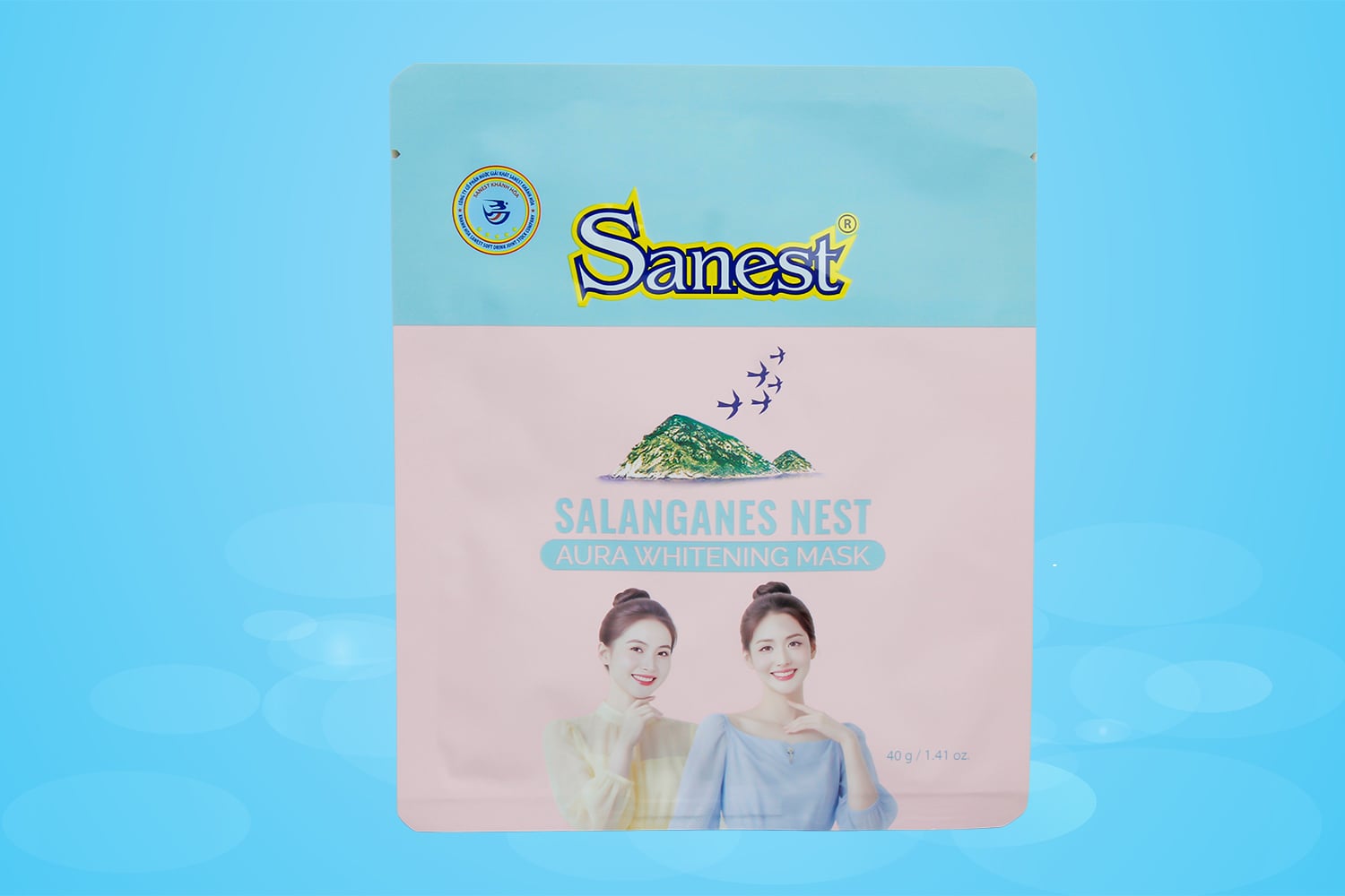 Mặt nạ Yến sào dưỡng trắng da với hàm lượng chiết xuất yến sào 500 ppm, kết hợp với phức hợp 5 loại peptide, các loại dẫn xuất của axit hyaluronic cùng với Niacinamide (vitamin B3) và chiết xuất rau má.