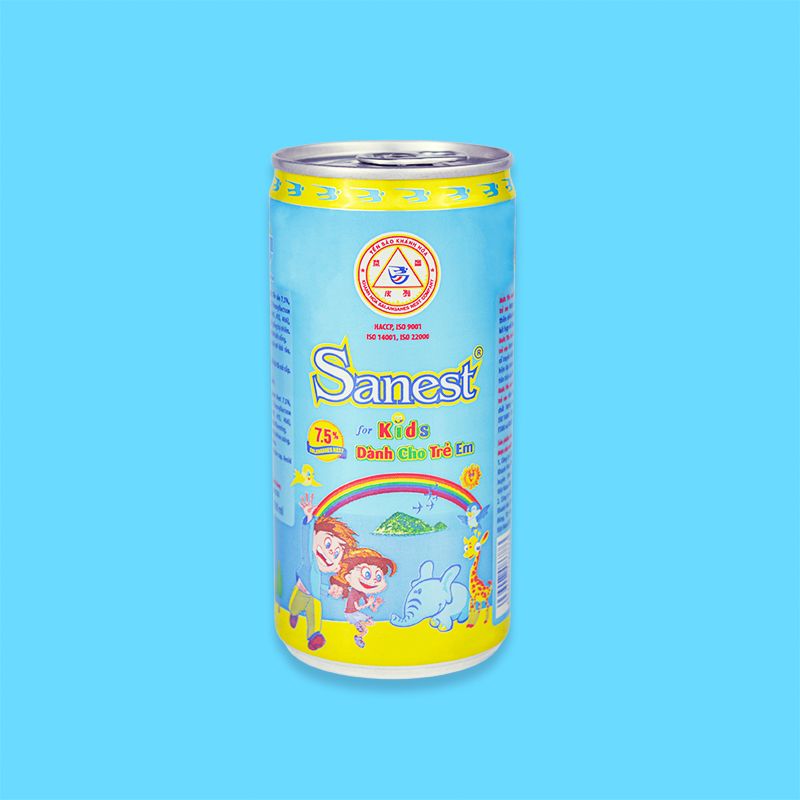 Nước Yến sào Khánh Hòa Sanest dành cho trẻ em (đóng lon) có hàm lượng Yến sào 7,5%, là sản phẩm nước giải khát bổ dưỡng, thích hợp cho mọi độ tuổi, tốt hơn cho trẻ em.