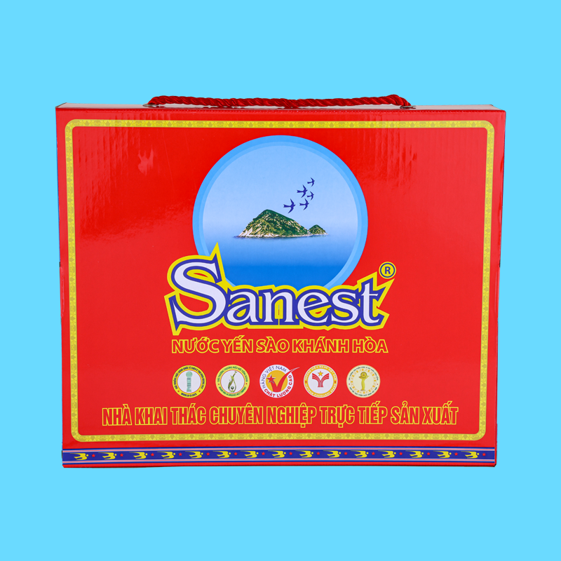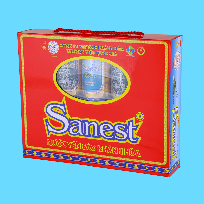 *    Nước Yến sào Khánh Hòa Sanest hộp 5 lon 190 ml QT: 1,17 kg; D x R x C = 26,8 x 5,6 x 20 (cm).