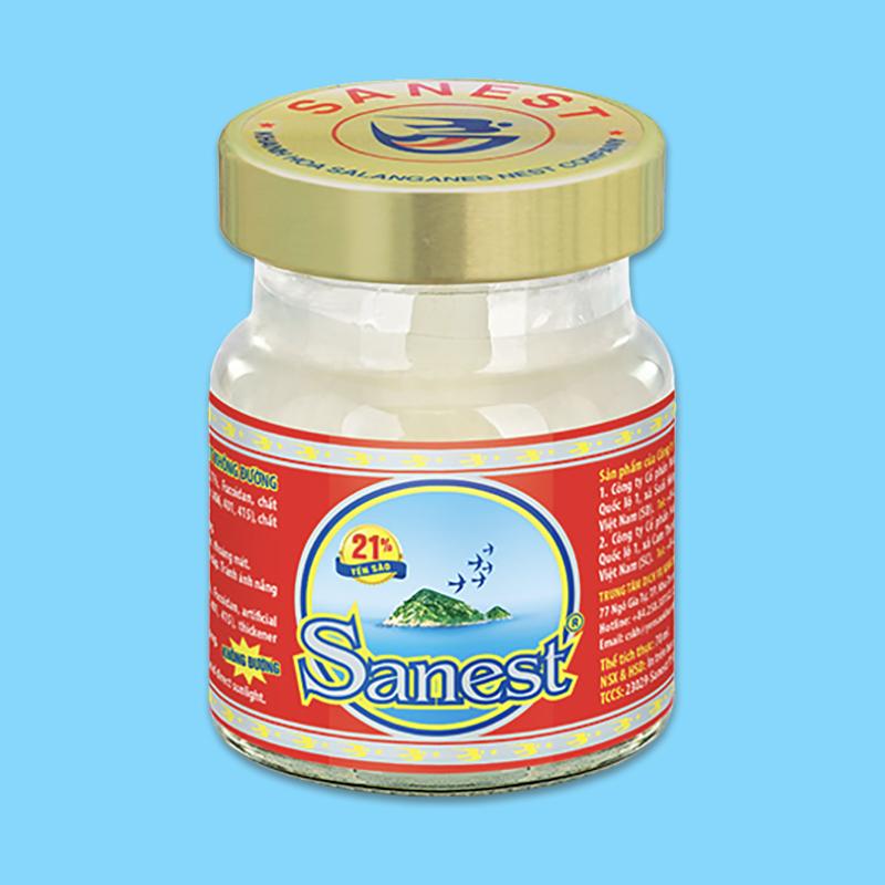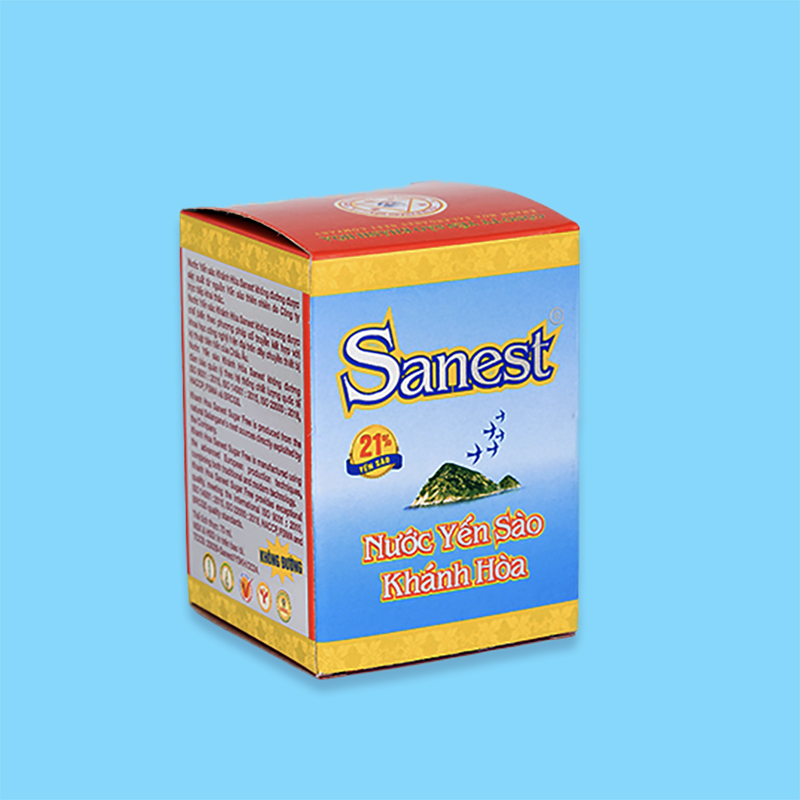 Nước Yến sào Khánh Hòa Sanest không đường có hàm lượng Yến sào 21%, là sản phẩm có giá trị bổ dưỡng, thích hợp cho mọi độ tuổi, phù hợp với người ăn kiêng.