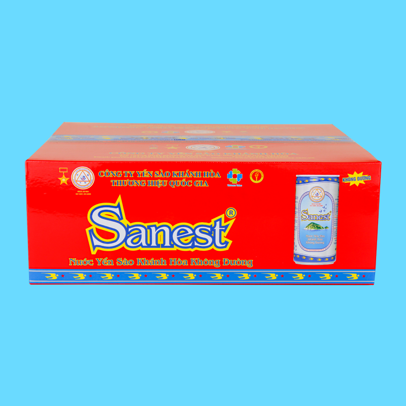 * Nước Yến sào Khánh Hòa Sanest không đường hộp 6 lon 190 ml QT: 1,4 kg; D x R x C = 32,25 x 5,6 x 20 (cm).